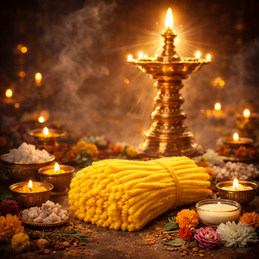 Its slow-burning nature makes it ideal for extended pooja sessions, evening deepam lighting, and all spiritual rituals.